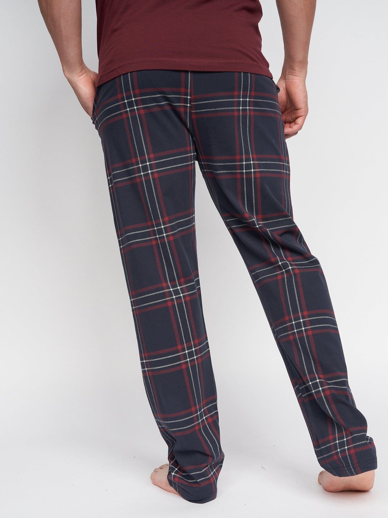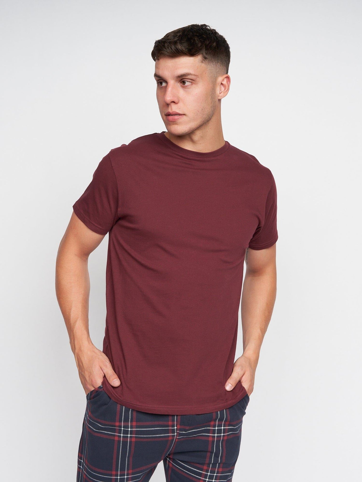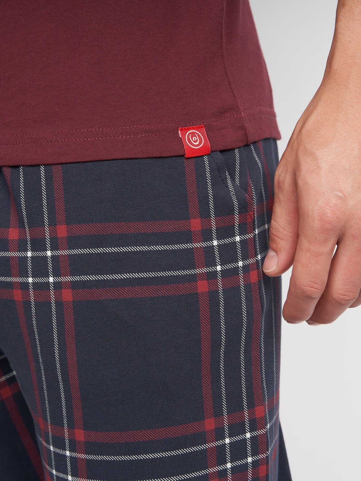 Men's 2 part loungewear set. Men's plain tee and checked pant lounge set.