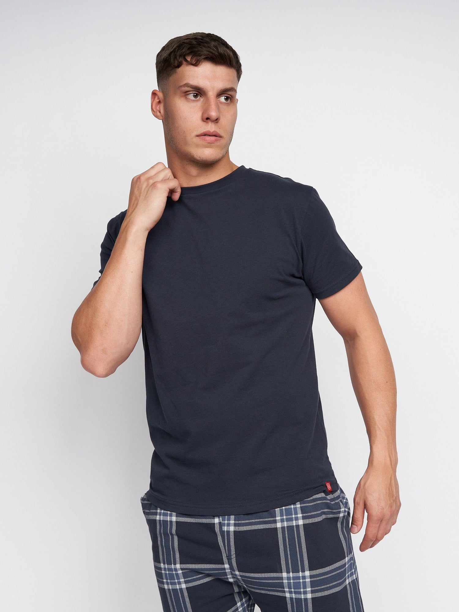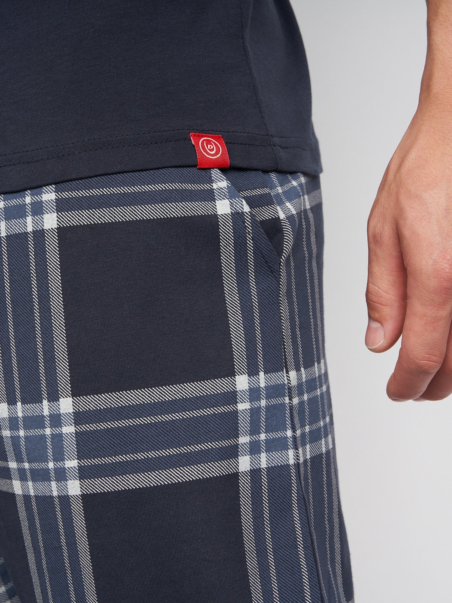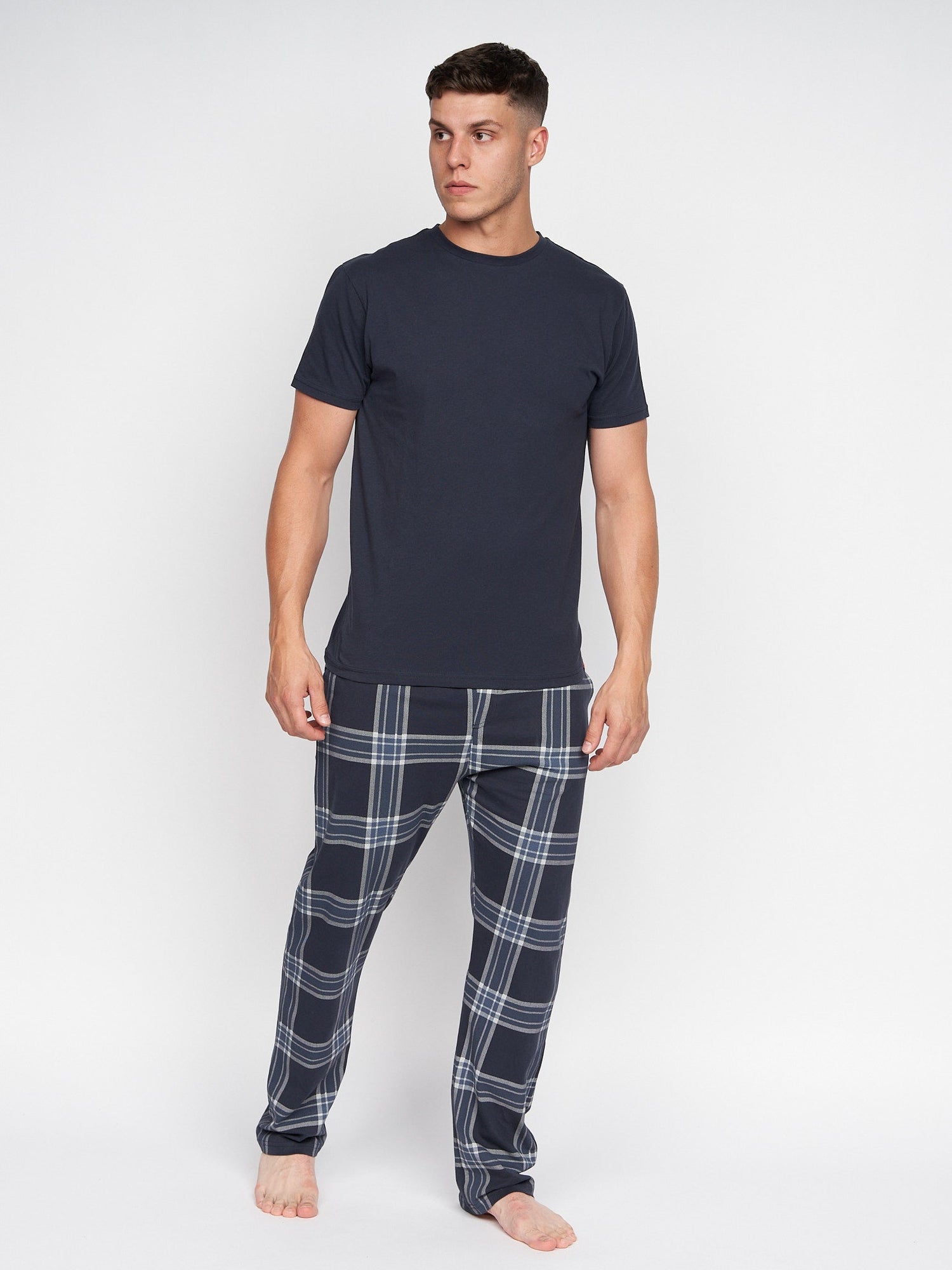 Men's 2 part loungewear set. Men's plain tee and checked pant lounge set.